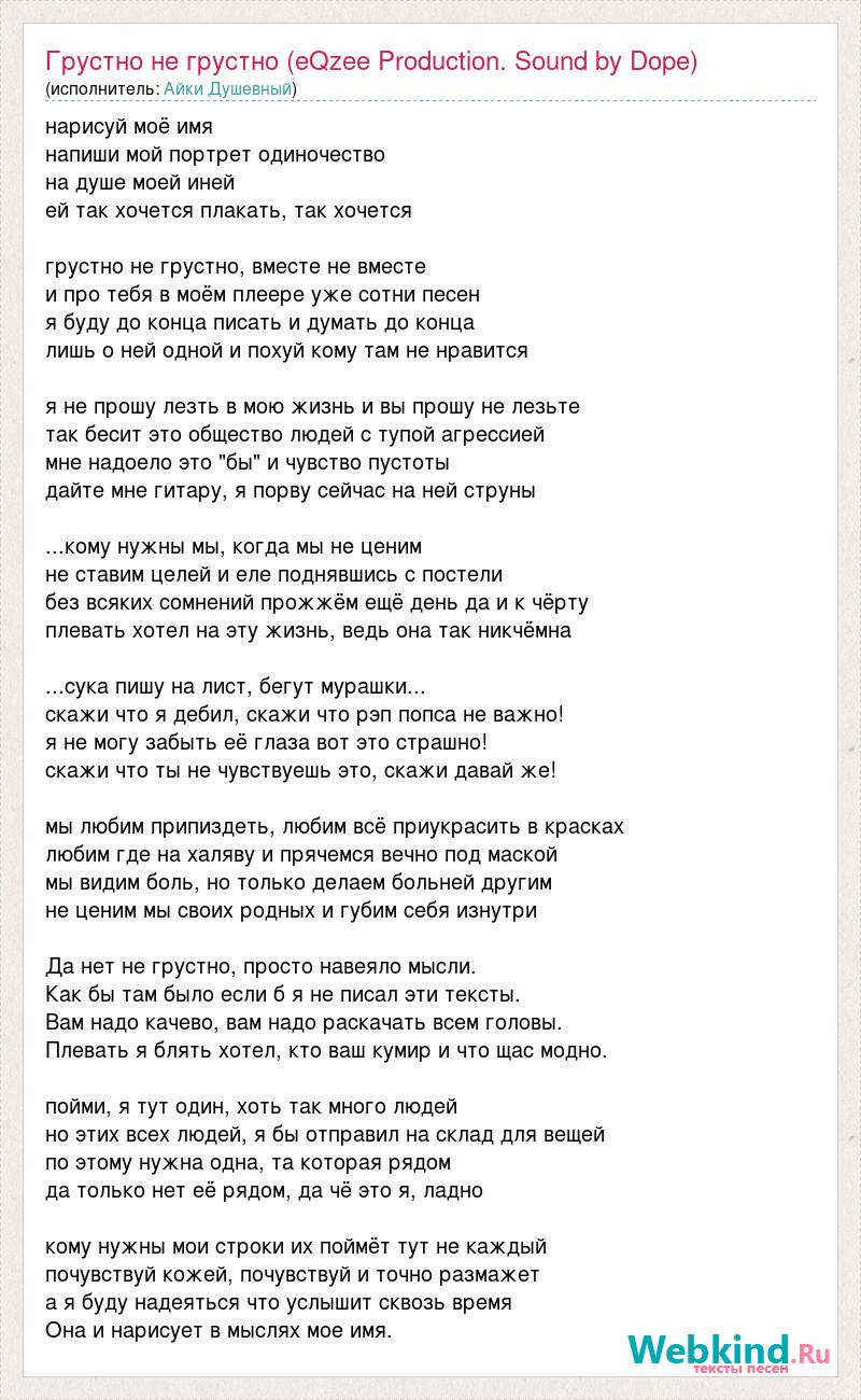 А как ты думаешь, о чем песня "Грустно не грустно (eQzee Production. Sound by Dope)" ?