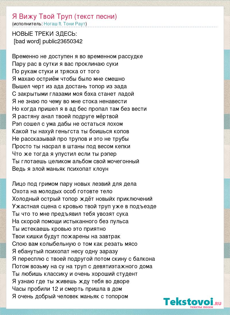 А как ты думаешь, о чем песня "Я Вижу Твой Труп (текст песни)" ?