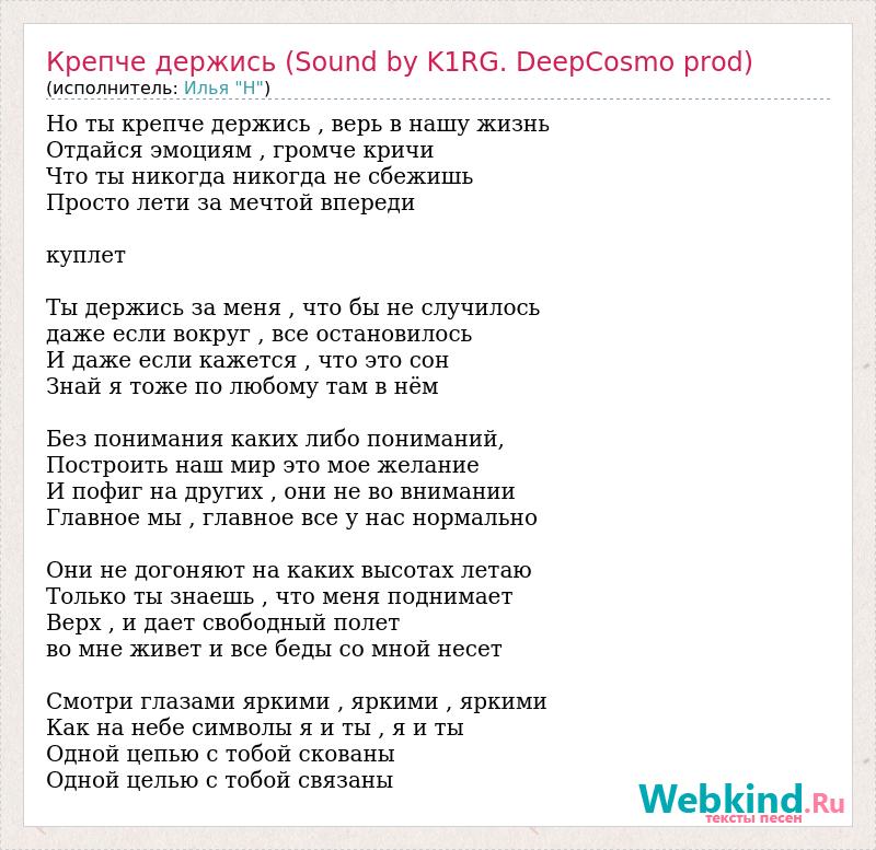 А как ты думаешь, о чем песня "Крепче держись (Sound by K1RG. DeepCosmo prod)" ?
