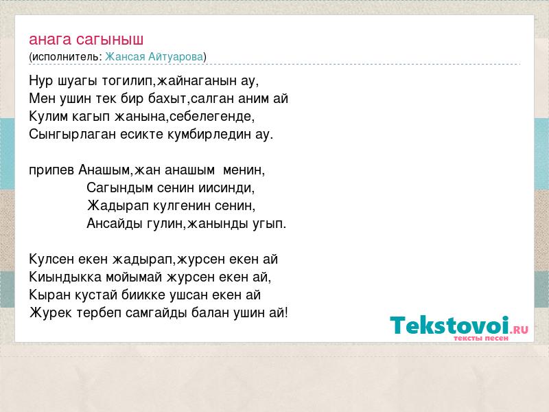 А как ты думаешь, о чем песня "Анага сагыныш" ?