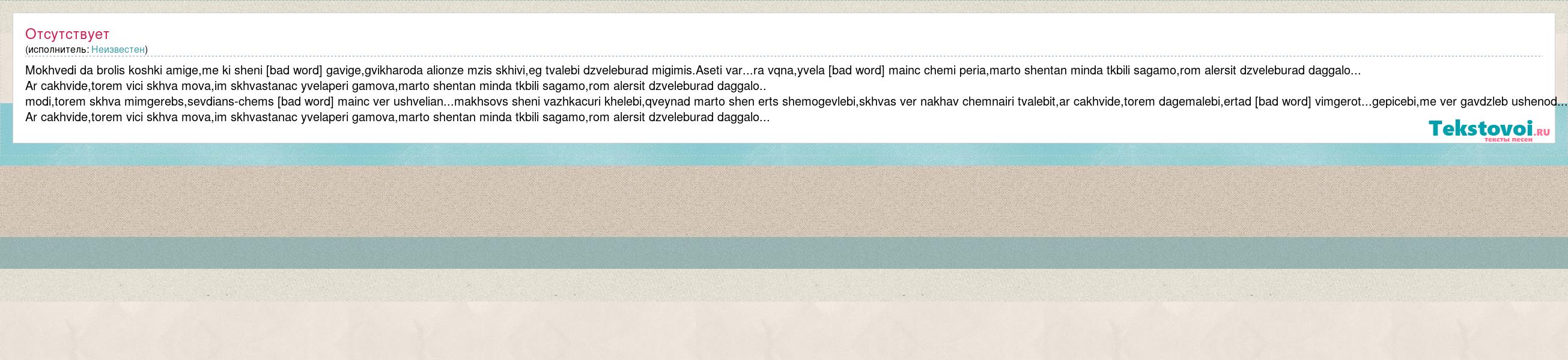Главная→Исполнители→Неизвестен→Mokhvedi da brolis koshki amige,me ki sheni siyvaruli gavige,gvikharoda