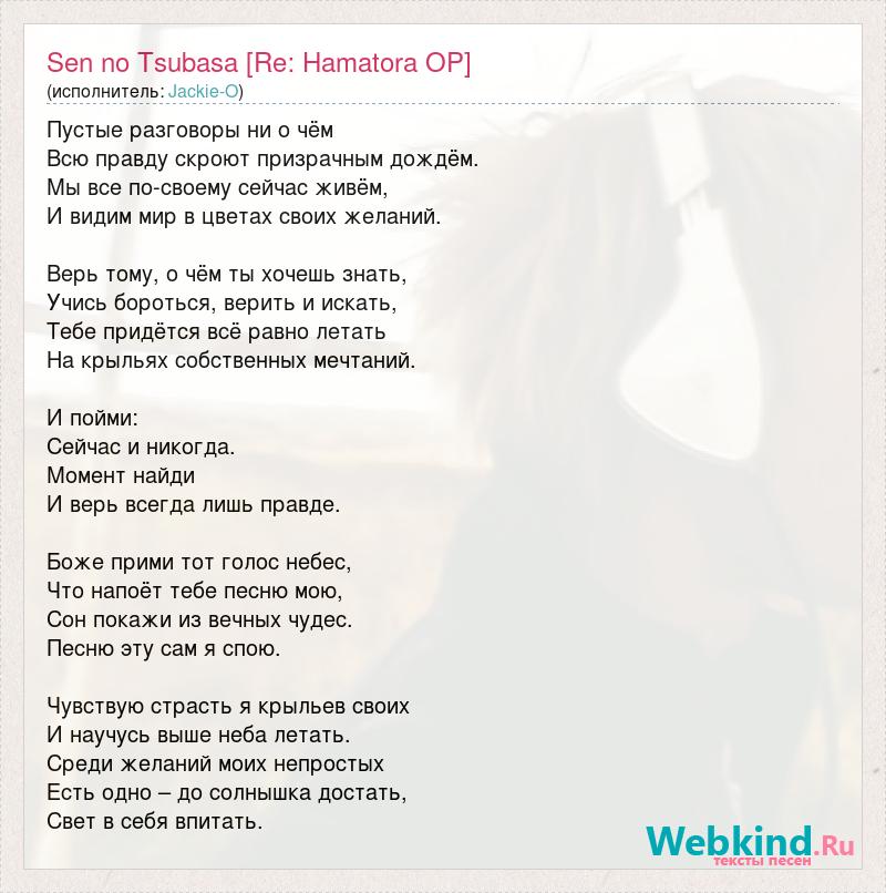 А как ты думаешь, о чем песня "Sen no Tsubasa [Re: Hamatora OP]" ?