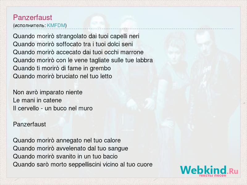 Quando morirò strangolato dai tuoi capelli neri Quando morirò soffocato tra i tuoi dolci seni Quando morirò accecato dai tuoi occhi marrone Quando morirò con le vene tagliate sulle tue labbra Quando ti morirò di fame in grembo Quando morirò bruciato nel tuo letto Non avrò imparato niente Le mani in catene Il cervello - un buco nel muro Panzerfaust Quando morirò annegato nel tuo calore Quando morirò avvelenato dal tuo sangue Quando morirò svanito in un tuo bacio Quando sarò morto seppelliscini vicino al tuo cuore