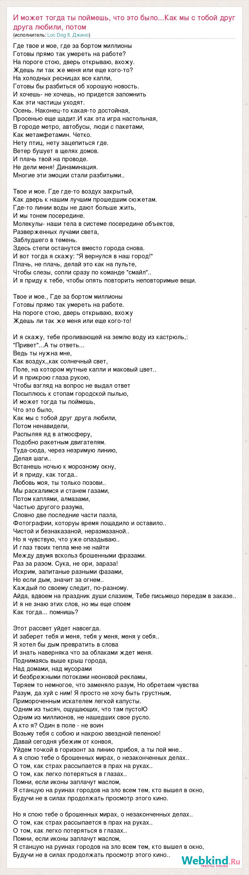 Главная→Исполнители→Loc Dog ft. Джино→И может тогда ты поймешь, что это было...Как мы с тобой друг друга любили, по