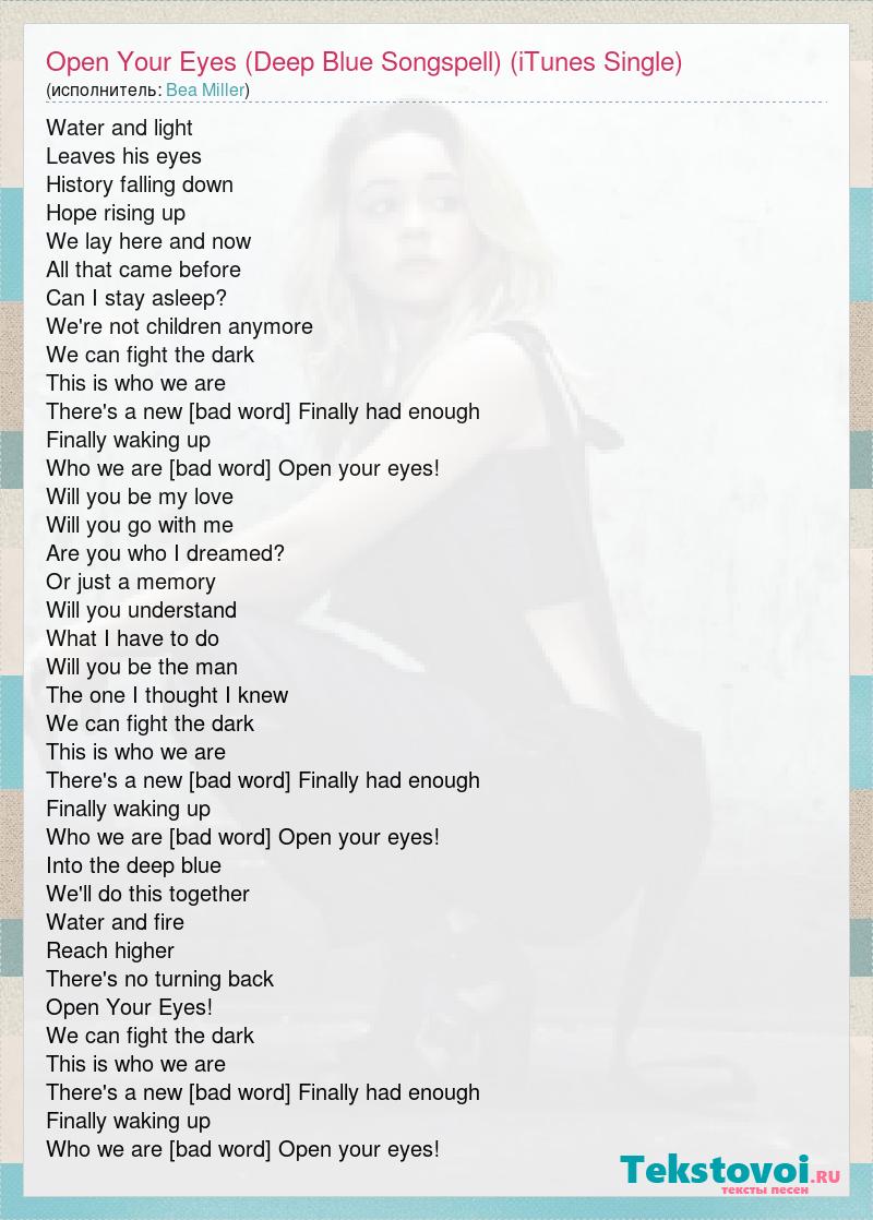 А как ты думаешь, о чем песня "Open Your Eyes (Deep Blue Songspell) (iTunes Single)" ?