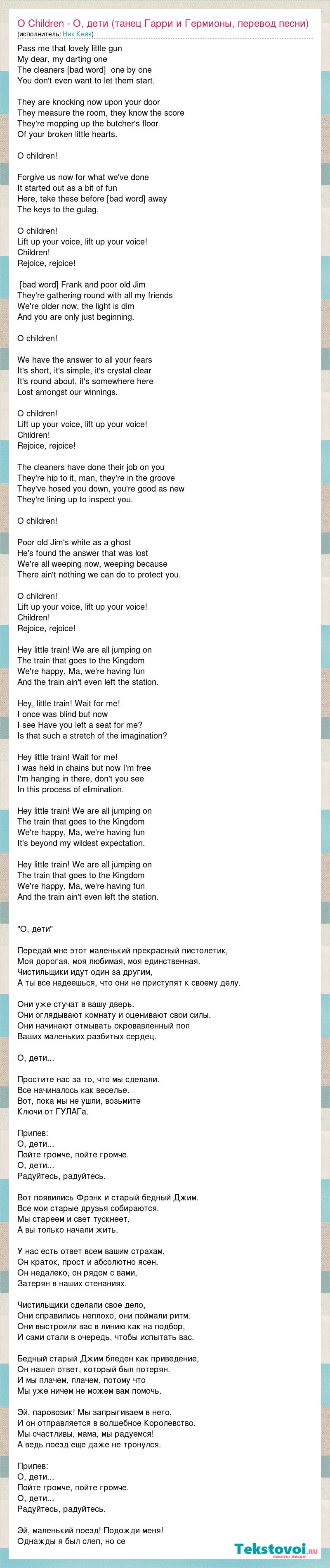 А как ты думаешь, о чем песня "O Children - О, дети (танец Гарри и Гермионы, перевод песни)" ?