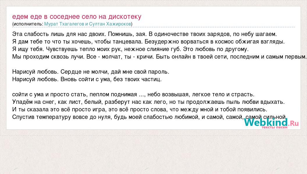 А как ты думаешь, о чем песня "Едем еде в соседнее село на дискотеку" ?