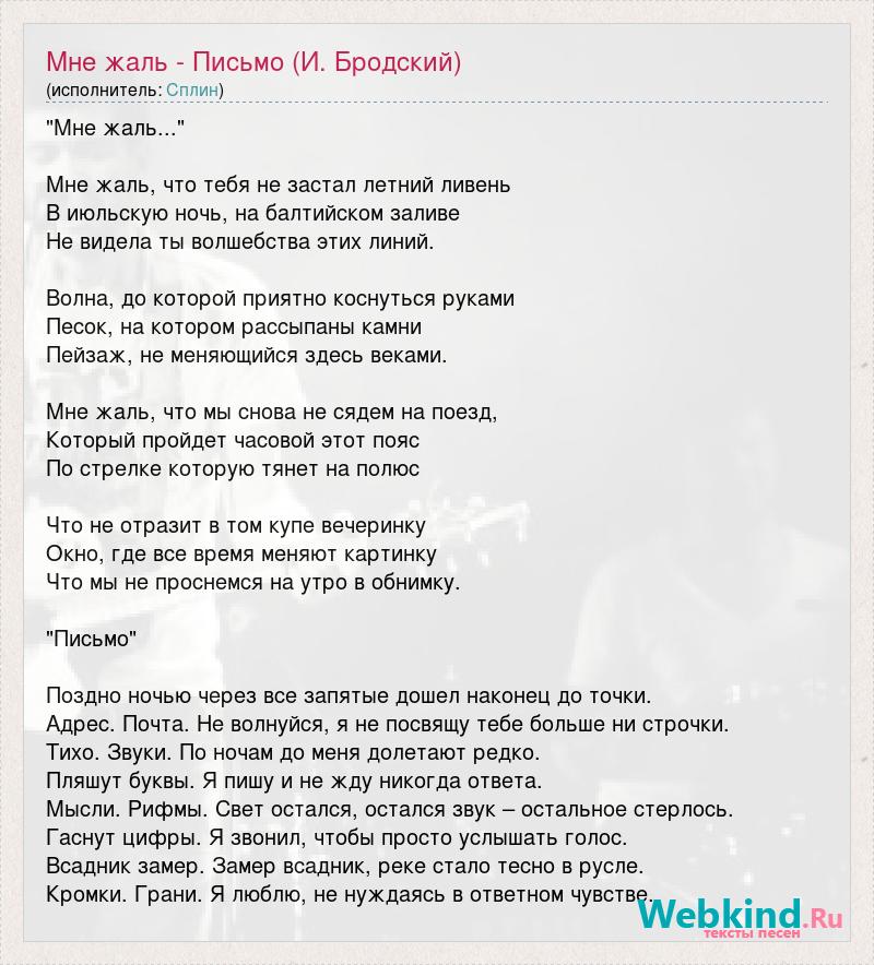 А как ты думаешь, о чем песня "Мне жаль - Письмо (И. Бродский)" ?