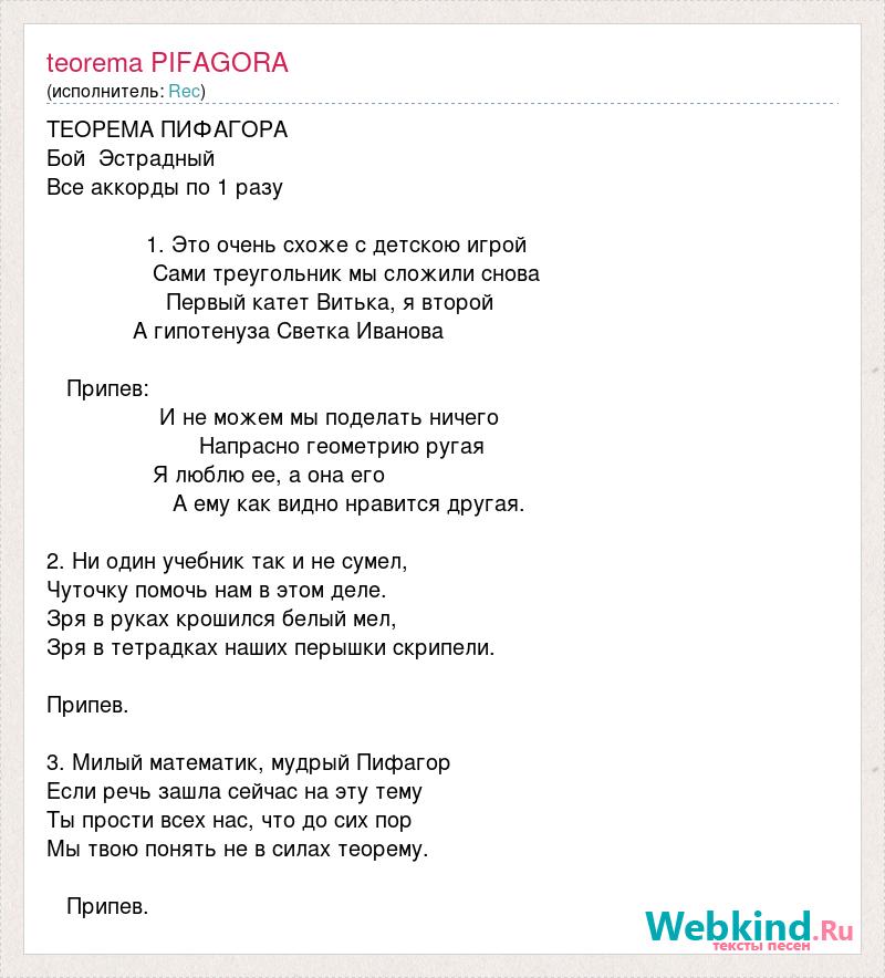 А как ты думаешь, о чем песня "Teorema PIFAGORA" ?