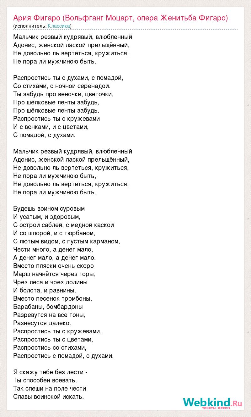 А как ты думаешь, о чем песня "Ария Фигаро (Вольфганг Моцарт, опера Женитьба Фигаро)" ?