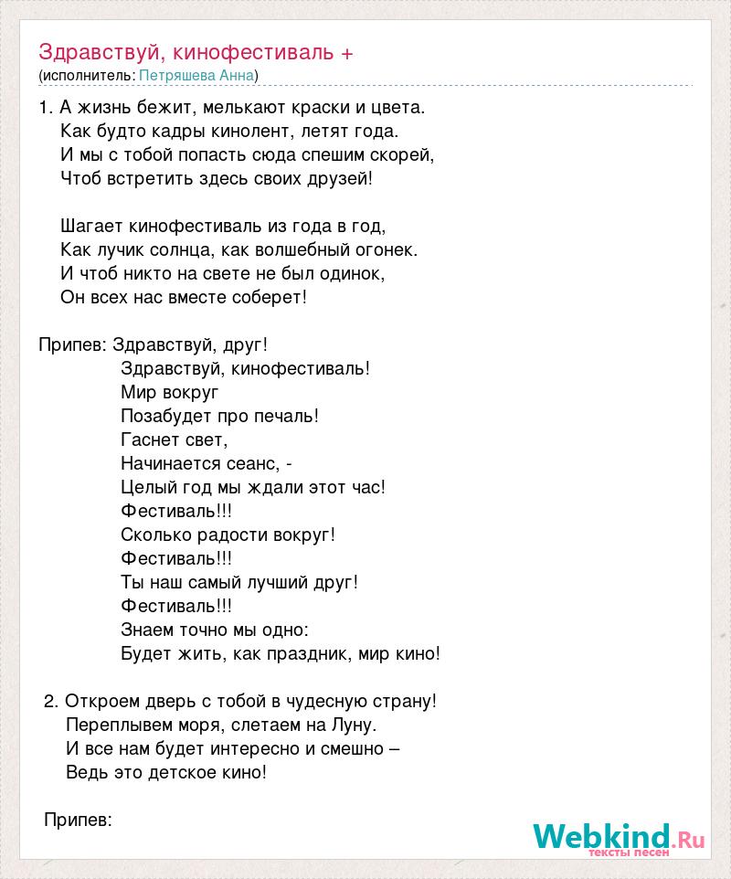 А как ты думаешь, о чем песня "Здравствуй, кинофестиваль +" ?