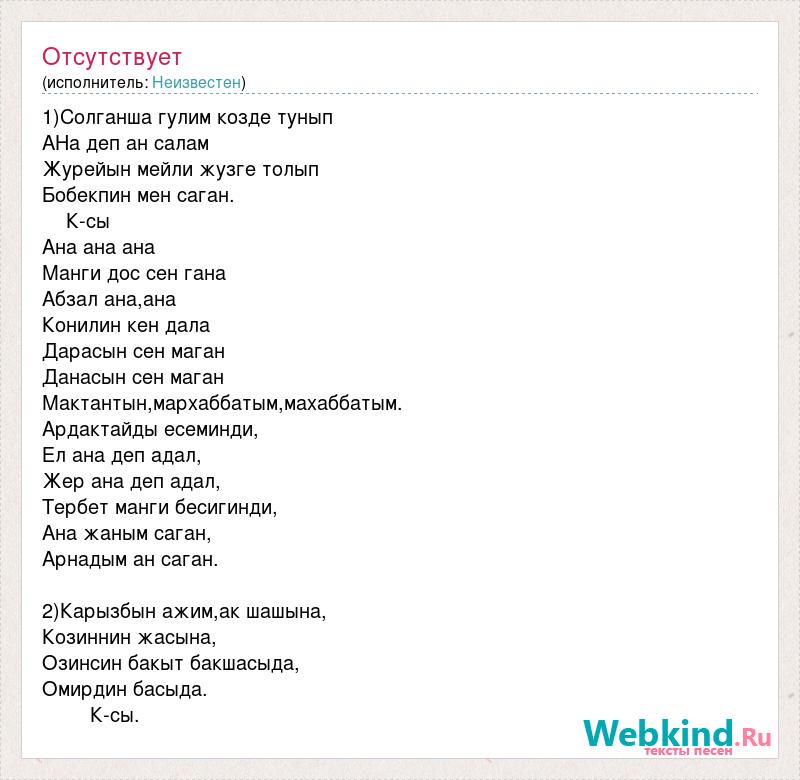 А как ты думаешь, о чем песня "1)Солганша гулим козде тунып" ?
