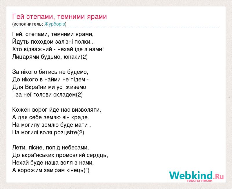 А как ты думаешь, о чем песня "Гей степами, темними ярами" ?