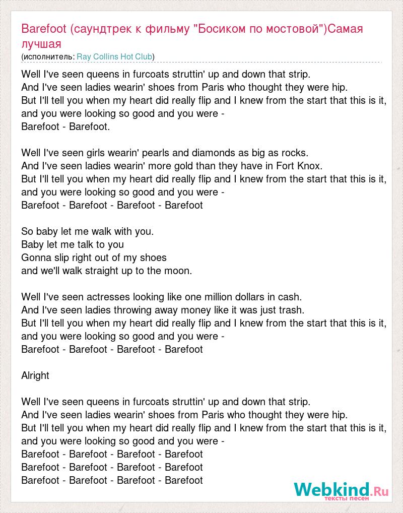 А как ты думаешь, о чем песня "Barefoot (саундтрек к фильму "Босиком по мостовой")Cамая лучшая музыка только у " ?