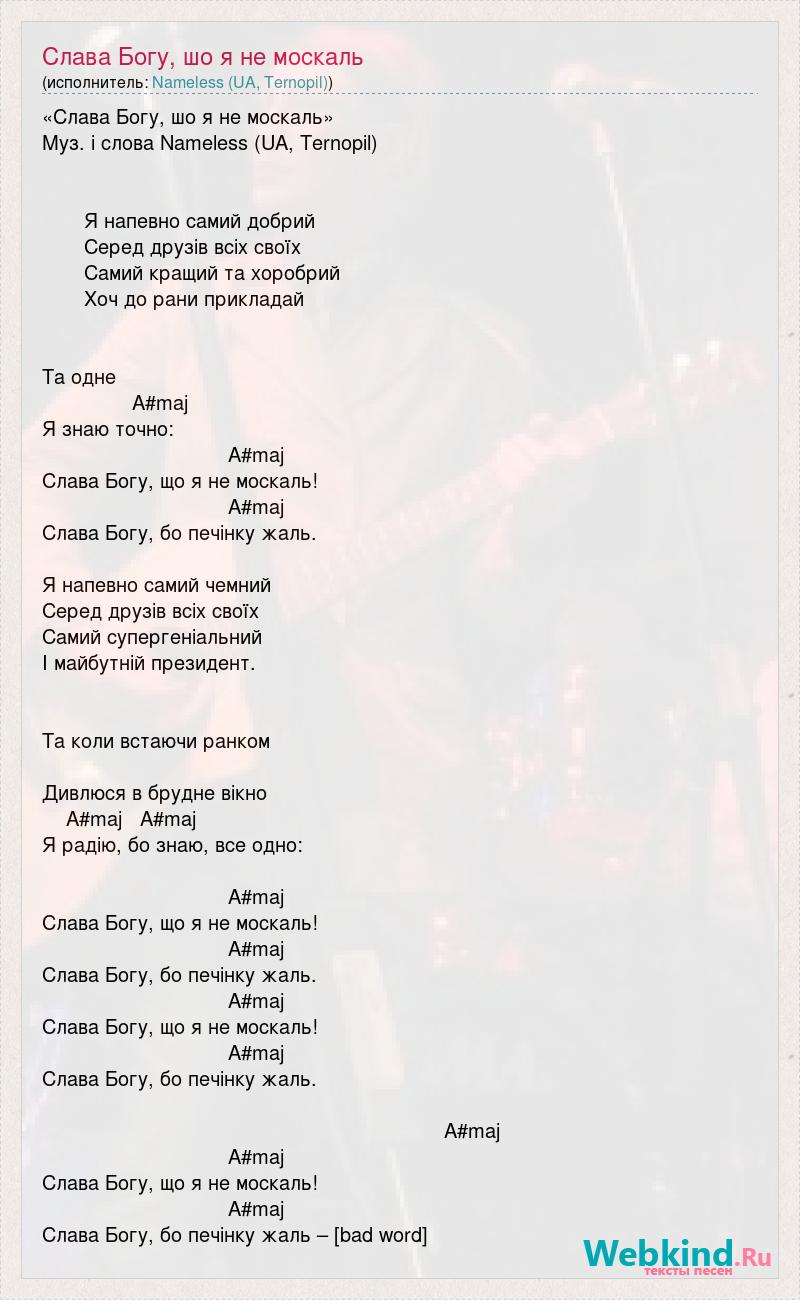А как ты думаешь, о чем песня "Слава Бoгу, шо я не москаль" ?