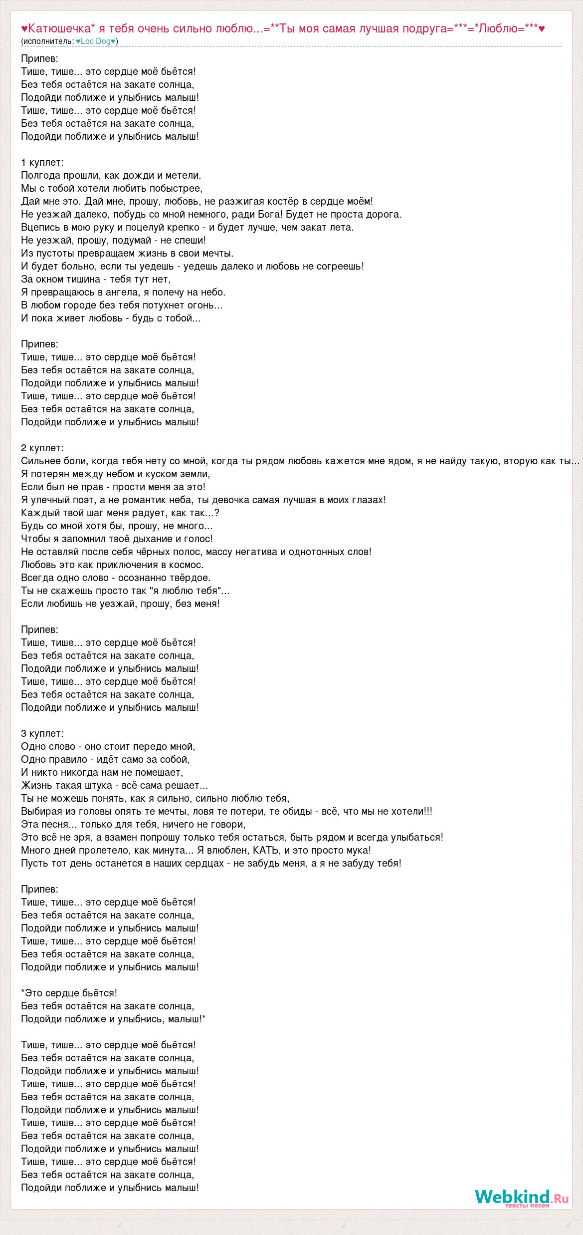 Главная→Исполнители→♥Loc Dog♥→♥Катюшечка* я тебя очень сильно люблю...=**Ты моя самая лучшая подруга=***=*Люб