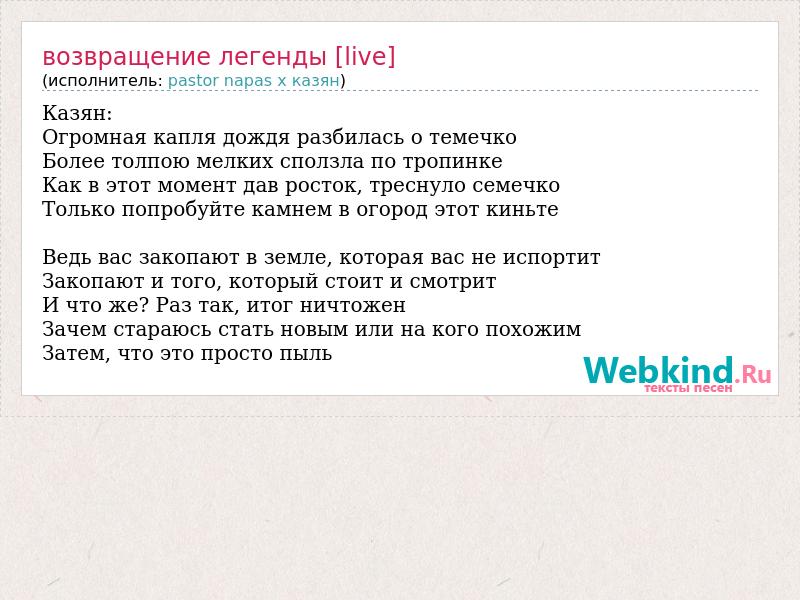 А как ты думаешь, о чем песня "Возвращение легенды [live]" ?