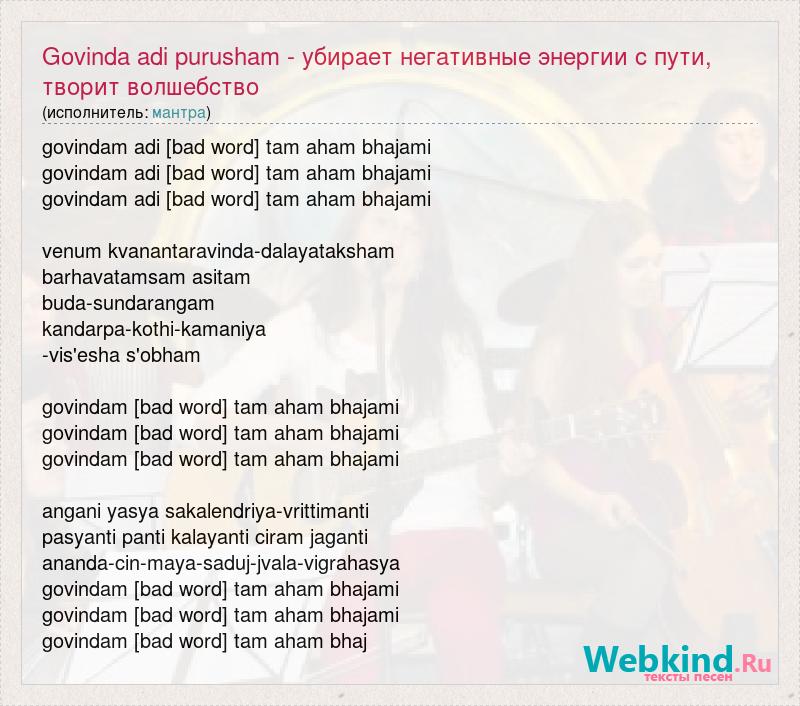 А как ты думаешь, о чем песня "Govinda adi purusham - убирает негативные энергии с пути, творит волшебст" ?