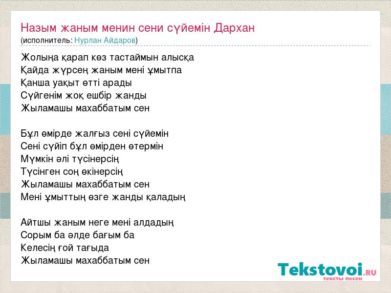 А как ты думаешь, о чем песня "Назым жаным менин сени сүйемін Дархан" ?