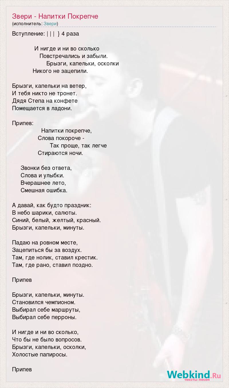 А как ты думаешь, о чем песня "Звери - Напитки Покрепче" ?