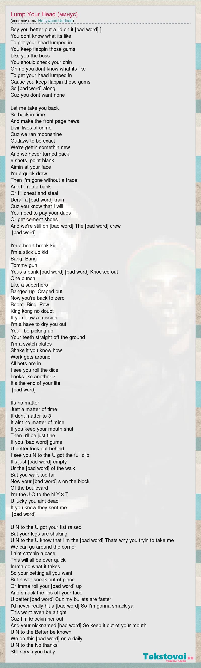 А как ты думаешь, о чем песня "Lump Your Head (минус)" ?