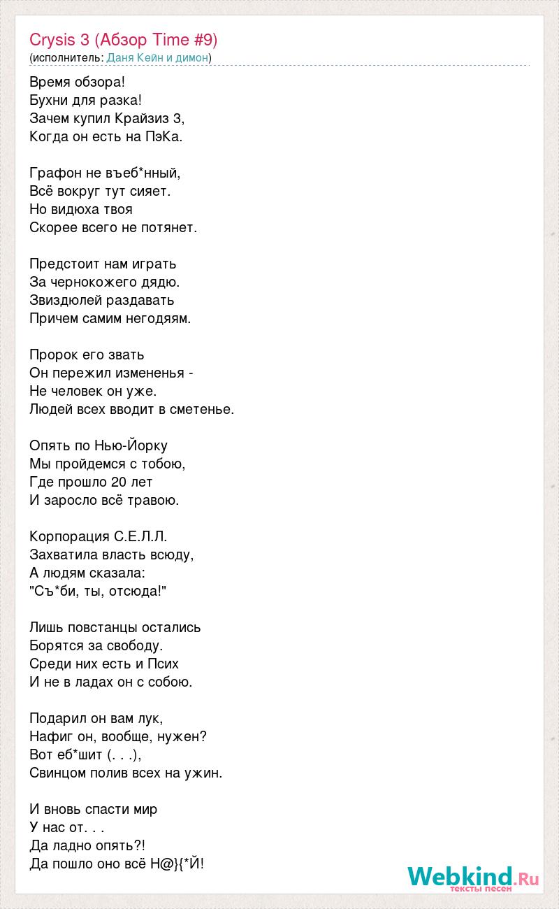 А как ты думаешь, о чем песня "Crysis 3 (Абзор Time #9)" ?