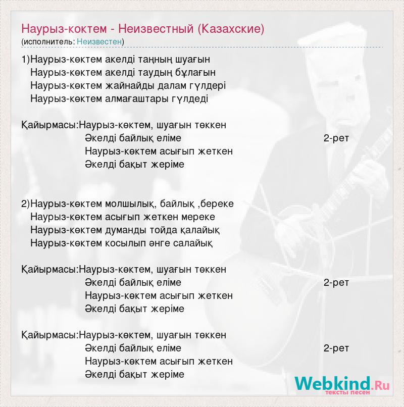 А как ты думаешь, о чем песня "Наурыз-коктем - Неизвестный (Казахские)" ?