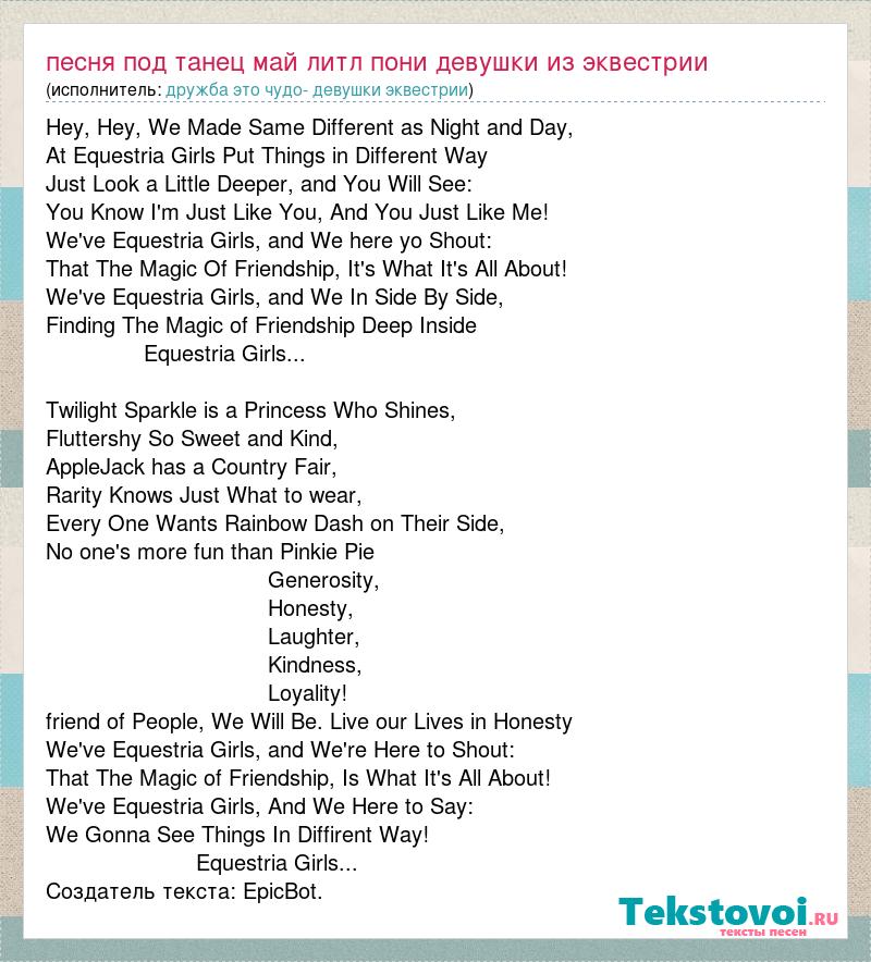 Главная→Исполнители→Дружба это чудо- девушки эквестрии→Песня под танец май литл пони девушки из эквестрии