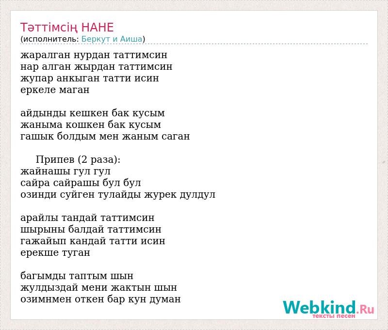 нар алган жырдан таттимсин