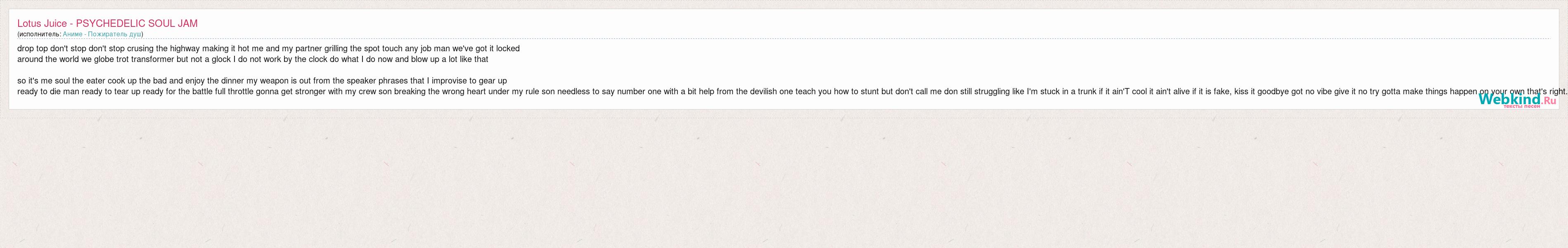 А как ты думаешь, о чем песня "Lotus Juice - PSYCHEDELIC SOUL JAM" ?