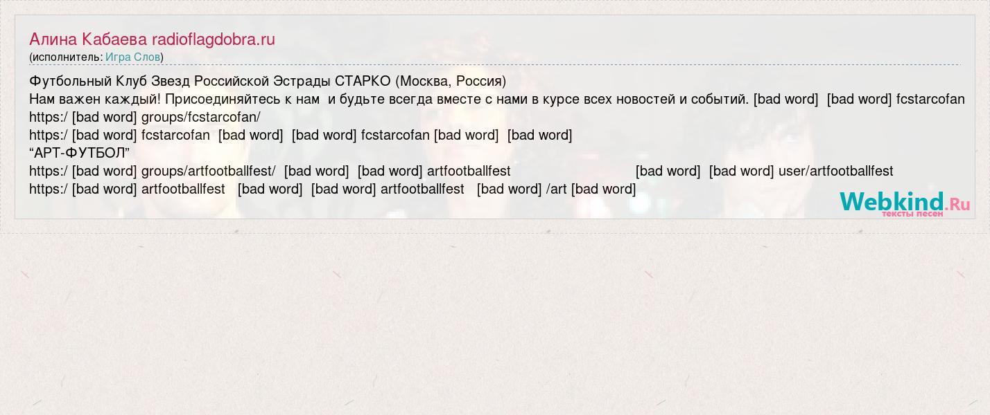 А как ты думаешь, о чем песня "Алина Кабаева radioflagdobra.ru" ?