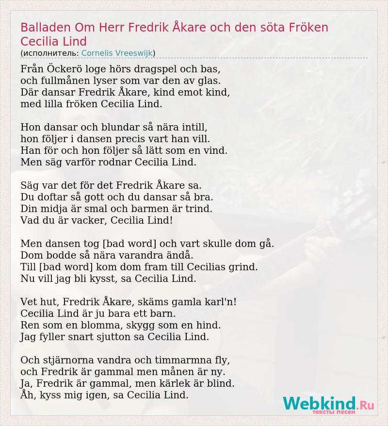 А как ты думаешь, о чем песня "Balladen Om Herr Fredrik Åkare och den söta Fröken Cecilia Lind" ?