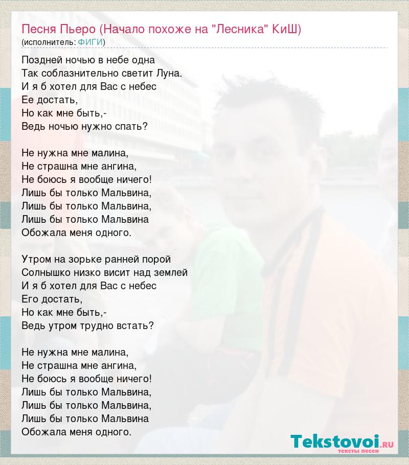 Песня Пьеро (Начало похоже на "Лесника" КиШ)