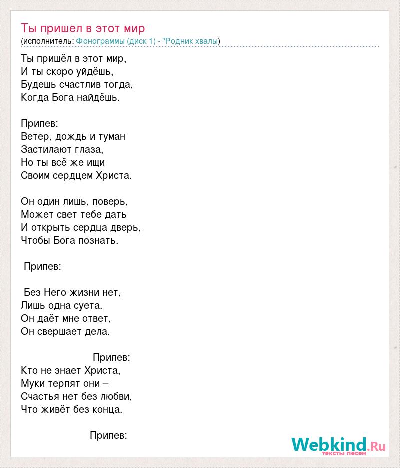 Главная→Исполнители→Фонограммы (диск 1) - "Родник хвалы и вдохновенья" - .com/thriftbox→Ты пришел в этот мир