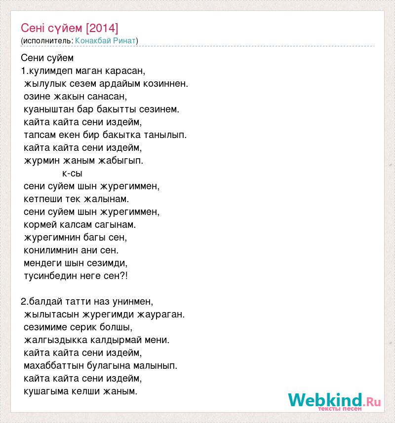А как ты думаешь, о чем песня "Сені сүйем [2014]" ?