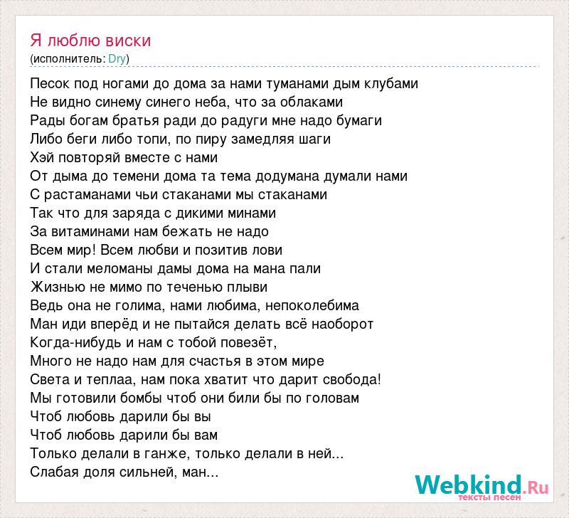 Песок под ногами до дома за нами туманами дым клубами Не видно синему синего неба, что за облаками Рады богам братья ради до радуги мне надо бумаги Либо беги либо топи, по пиру замедляя шаги Хэй повторяй вместе с нами От дыма до темени дома та тема додумана думали нами С растаманами чьи стаканами мы стаканами Так что для заряда с дикими минами За витаминами нам бежать не надо Всем мир! Всем любви и позитив лови И стали меломаны дамы дома на мана пали Жизнью не мимо по теченью плыви Ведь она не голима, нами любима, непоколебима Ман иди вперёд и не пытайся делать всё наоборот Когда-нибудь и нам с тобой повезёт, Много не надо нам для счастья в этом мире Света и теплаа, нам пока хватит что дарит свобода! Мы готовили бомбы чтоб они били бы по головам Чтоб любовь дарили бы вы Чтоб любовь дарили бы вам Только делали в ганже, только делали в ней... Слабая доля сильней, ман...