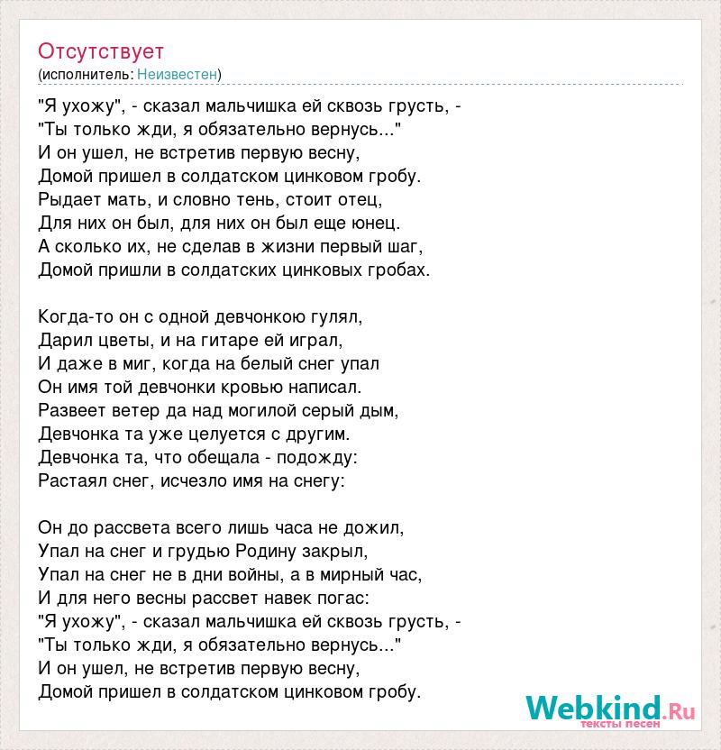 "Я ухожу", - сказал мальчишка ей сквозь грусть, -