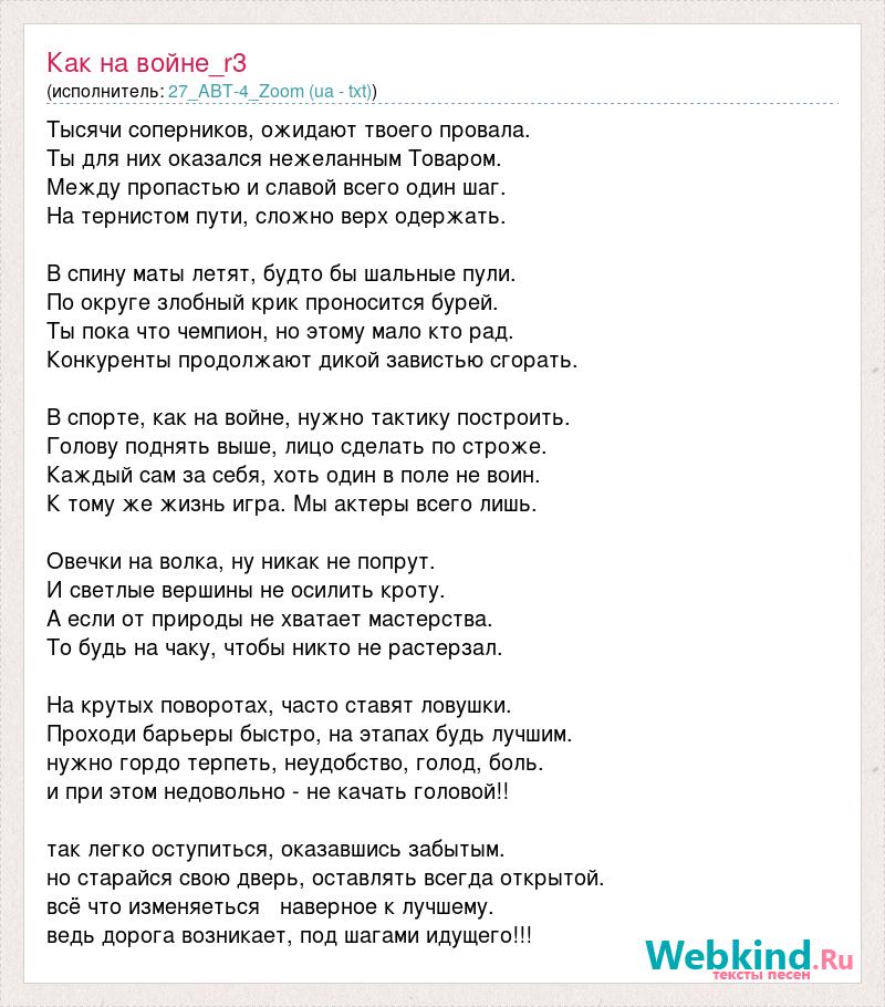 А как ты думаешь, о чем песня "Как на войне_r3" ?