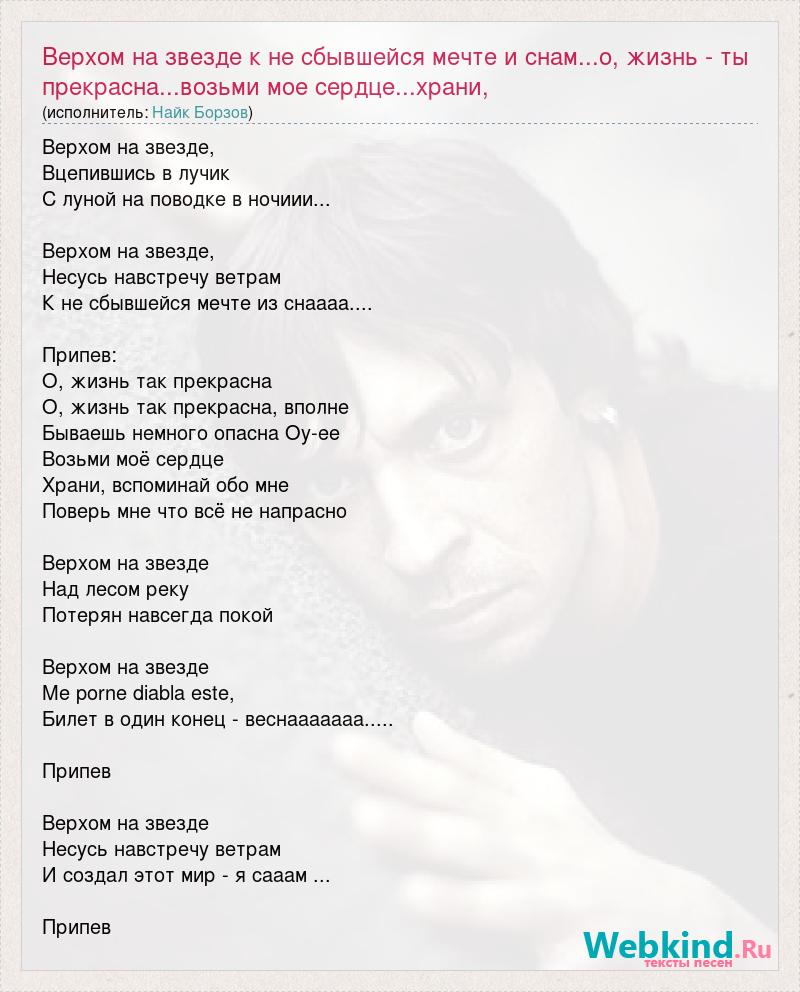 Главная→Исполнители→Найк Борзов→Верхом на звезде к не сбывшейся мечте и снам...о, жизнь - ты прекрасна.