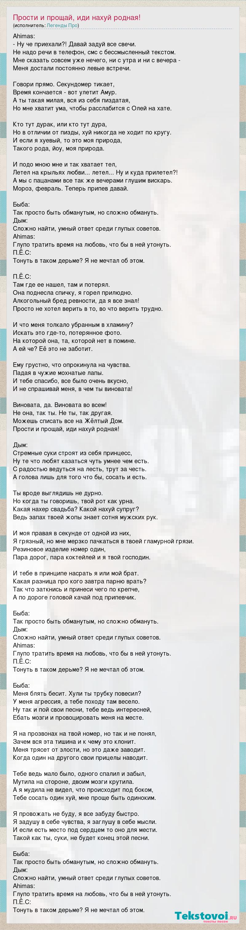 А как ты думаешь, о чем песня "Прости и прощай, иди нахуй родная!" ?