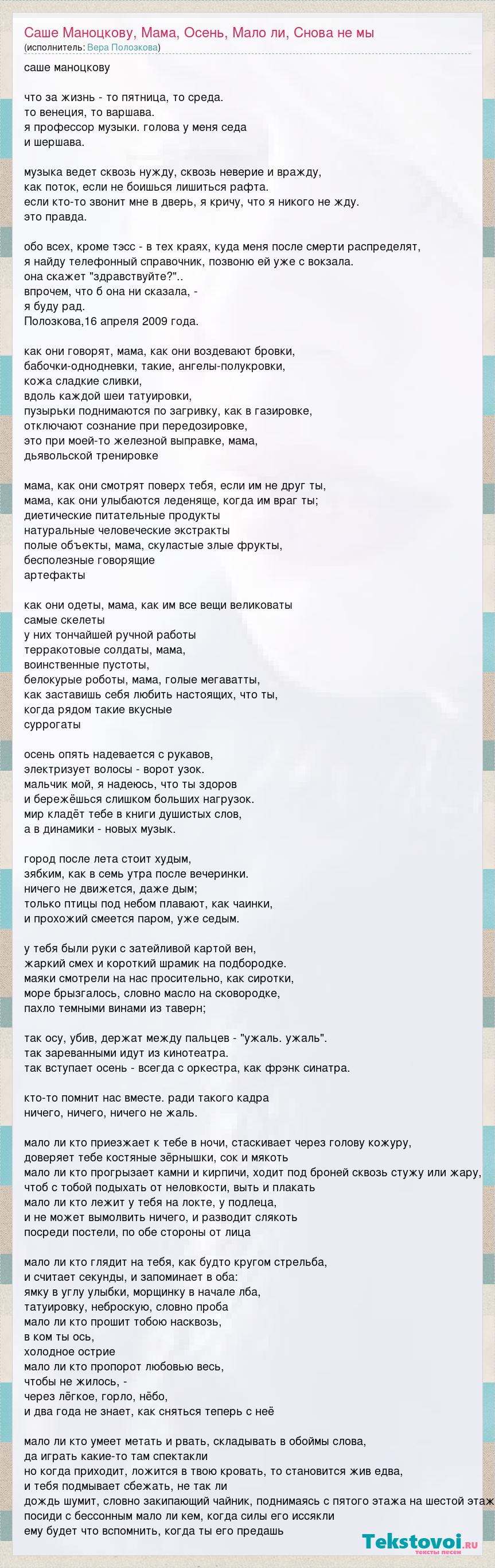 Саше Маноцкову, Мама, Осень, Мало ли, Снова не мы