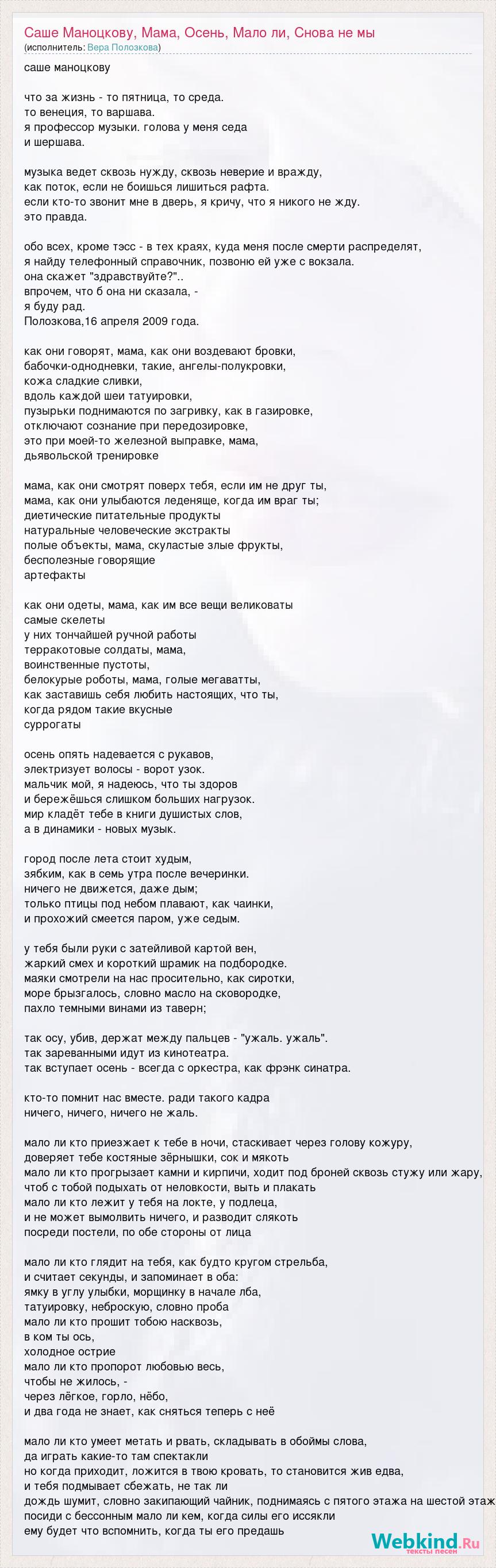 Саше Маноцкову, Мама, Осень, Мало ли, Снова не мы
