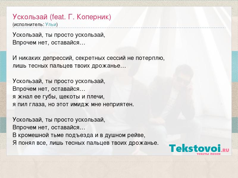 А как ты думаешь, о чем песня "Ускользай (feat. Г. Коперник)" ?