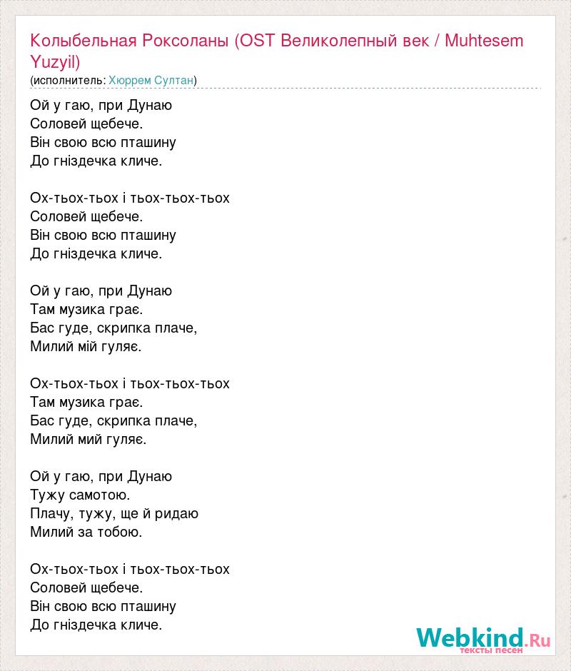 Колыбельная Роксоланы (OST Великолепный век / Muhtesem Yuzyil)
