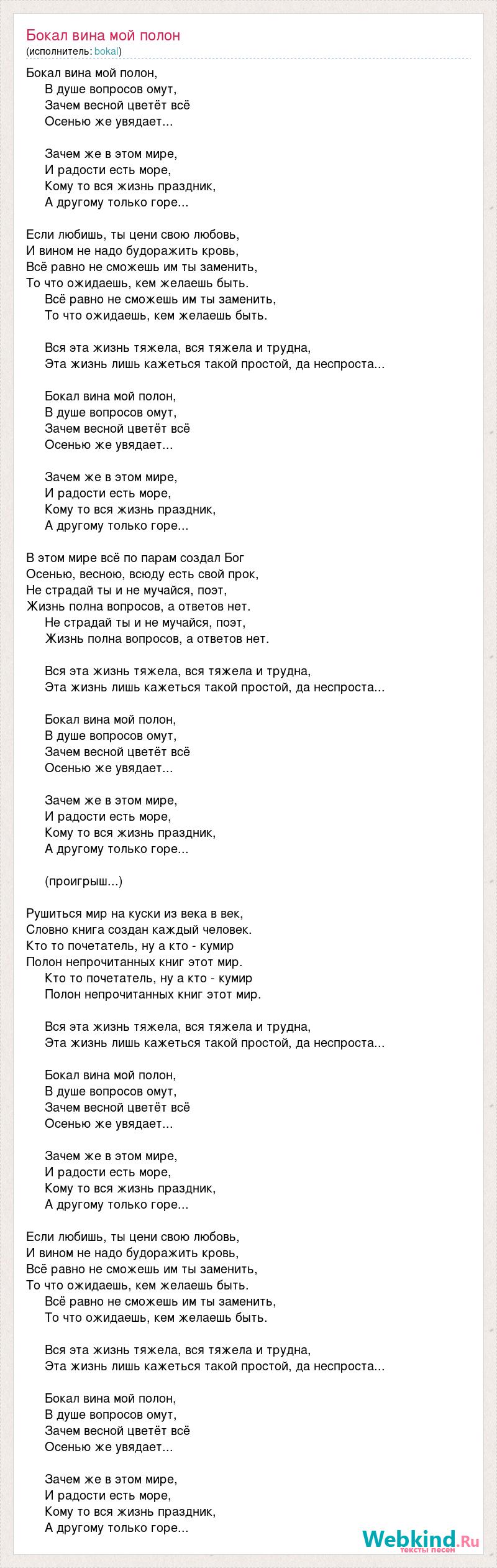 А как ты думаешь, о чем песня "Бокал вина мой полон" ?