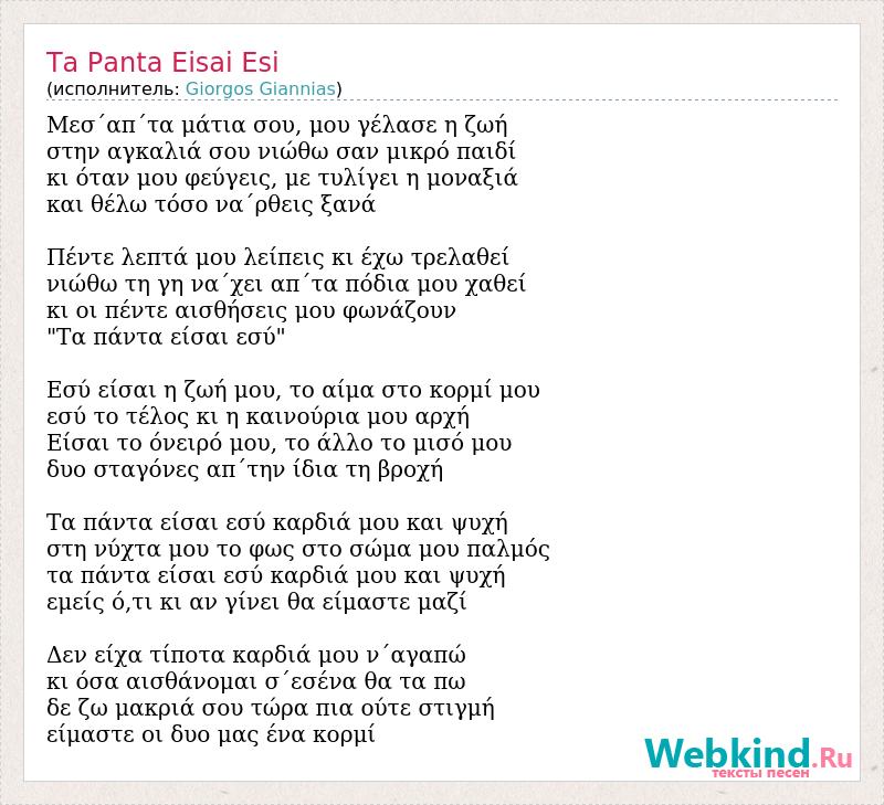 А как ты думаешь, о чем песня "Ta Panta Eisai Esi" ?