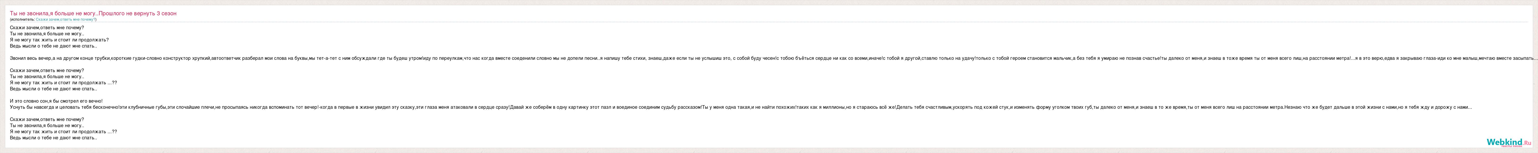 Главная→Исполнители→Скажи зачем,ответь мне почему?→Ты не звонила,я больше не могу..Прошлого не вернуть 3 сезон 4 Я не могу