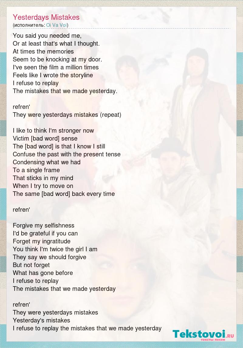 А как ты думаешь, о чем песня "Yesterdays Mistakes" ?