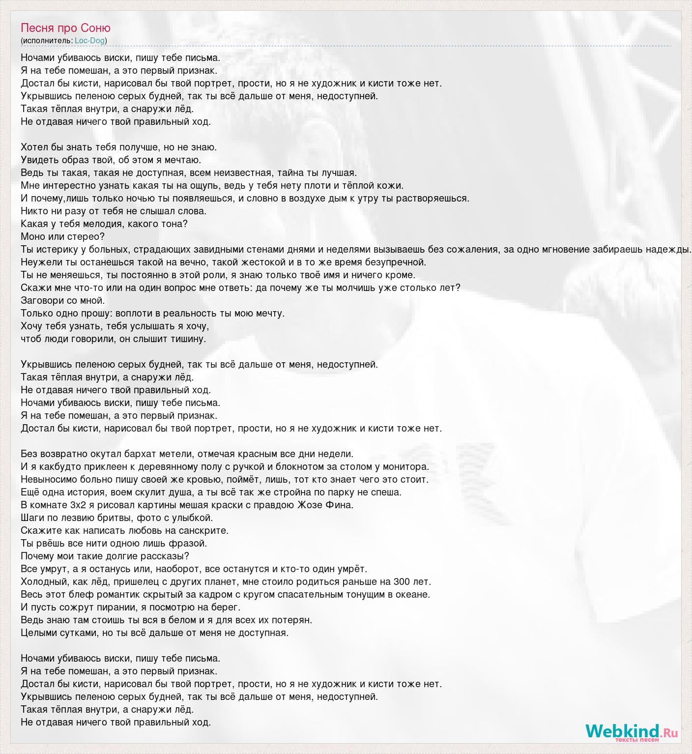 Ночами убиваюсь виски, пишу тебе письма. Я на тебе помешан, а это первый признак. Достал бы кисти, нарисовал бы твой портрет, прости, но я не художник и кисти тоже нет. Укрывшись пеленою серых будней, так ты всё дальше от меня, недоступней. Такая тёплая внутри, а снаружи лёд. Не отдавая ничего твой правильный ход. Хотел бы знать тебя получше, но не знаю. Увидеть образ твой, об этом я мечтаю. Ведь ты такая, такая не доступная, всем неизвестная, тайна ты лучшая. Мне интерестно узнать какая ты на ощупь, ведь у тебя нету плоти и тёплой кожи. И почему,лишь только ночью ты появляешься, и словно в воздухе дым к утру ты растворяешься. Никто ни разу от тебя не слышал слова. Какая у тебя мелодия, какого тона? Моно или стерео? Ты истерику у больных, страдающих завидными стенами днями и неделями вызываешь без сожаления, за одно мгновение забираешь надежды. Неужели ты останешься такой на вечно, такой жестокой и в то же время безупречной. Ты не меняешься, ты постоянно в этой роли, я знаю только твоё имя и ничего кроме. Скажи мне что-то или на один вопрос мне ответь: да почему же ты молчишь уже столько лет? Заговори со мной. Только одно прошу: воплоти в реальность ты мою мечту. Хочу тебя узнать, тебя услышать я хочу, чтоб люди говорили, он слышит тишину. Укрывшись пеленою серых будней, так ты всё дальше от меня, недоступней. Такая тёплая внутри, а снаружи лёд. Не отдавая ничего твой правильный ход. Ночами убиваюсь виски, пишу тебе письма. Я на тебе помешан, а это первый признак. Достал бы кисти, нарисовал бы твой портрет, прости, но я не художник и кисти тоже нет. Без возвратно окутал бархат метели, отмечая красным все дни недели. И я какбудто приклеен к деревянному полу с ручкой и блокнотом за столом у монитора. Невыносимо больно пишу своей же кровью, поймёт, лишь, тот кто знает чего это стоит. Ещё одна история, воем скулит душа, а ты всё так же стройна по парку не спеша. В комнате 3х2 я рисовал картины мешая краски с правдою Жозе Фина. Шаги по лезвию бритвы, фото с улыбкой. Скажите как написать любовь на санскрите. Ты рвёшь все нити одною лишь фразой. Почему мои такие долгие рассказы? Все умрут, а я останусь или, наоборот, все останутся и кто-то один умрёт. Холодный, как лёд, пришелец с других планет, мне стоило родиться раньше на 300 лет. Весь этот блеф романтик скрытый за кадром с кругом спасательным тонущим в океане. И пусть сожрут пирании, я посмотрю на берег. Ведь знаю там стоишь ты вся в белом и я для всех их потерян. Целыми сутками, но ты всё дальше от меня не доступная. Ночами убиваюсь виски, пишу тебе письма. Я на тебе помешан, а это первый признак. Достал бы кисти, нарисовал бы твой портрет, прости, но я не художник и кисти тоже нет. Укрывшись пеленою серых будней, так ты всё дальше от меня, недоступней. Такая тёплая внутри, а снаружи лёд. Не отдавая ничего твой правильный ход.