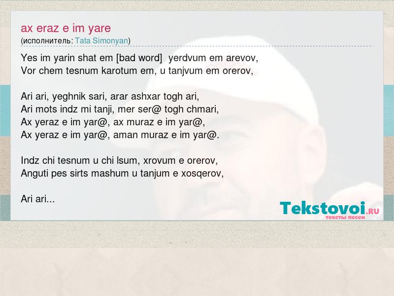А как ты думаешь, о чем песня "Ax eraz e im yare" ?